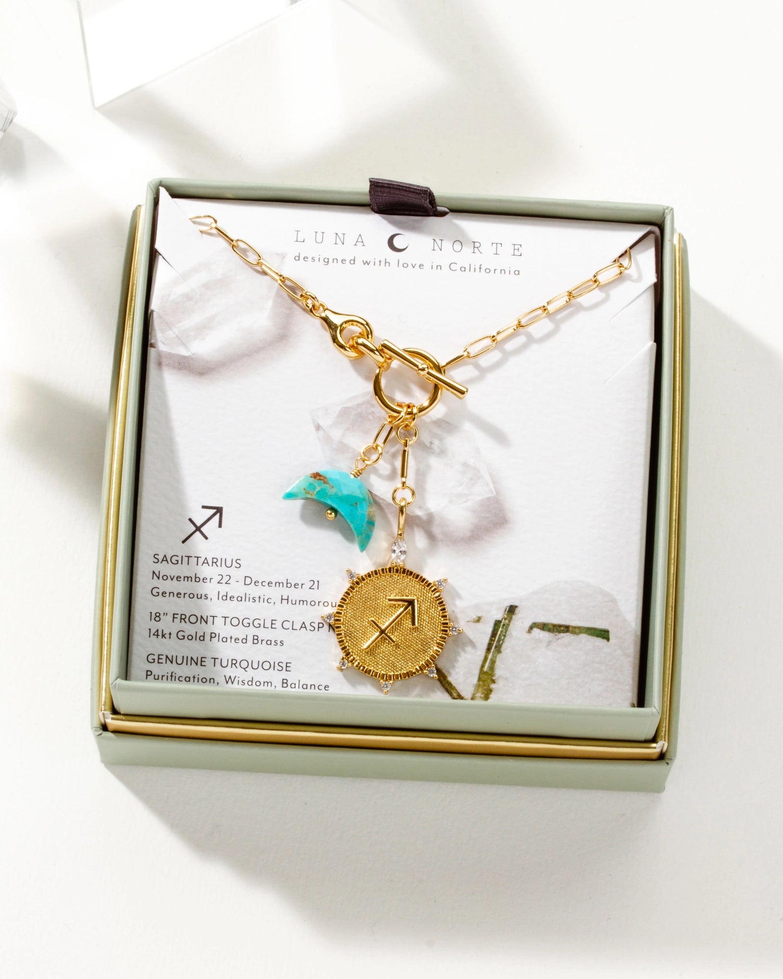 Lunar Front Toggle Necklace - Sagittarius + Turquoise