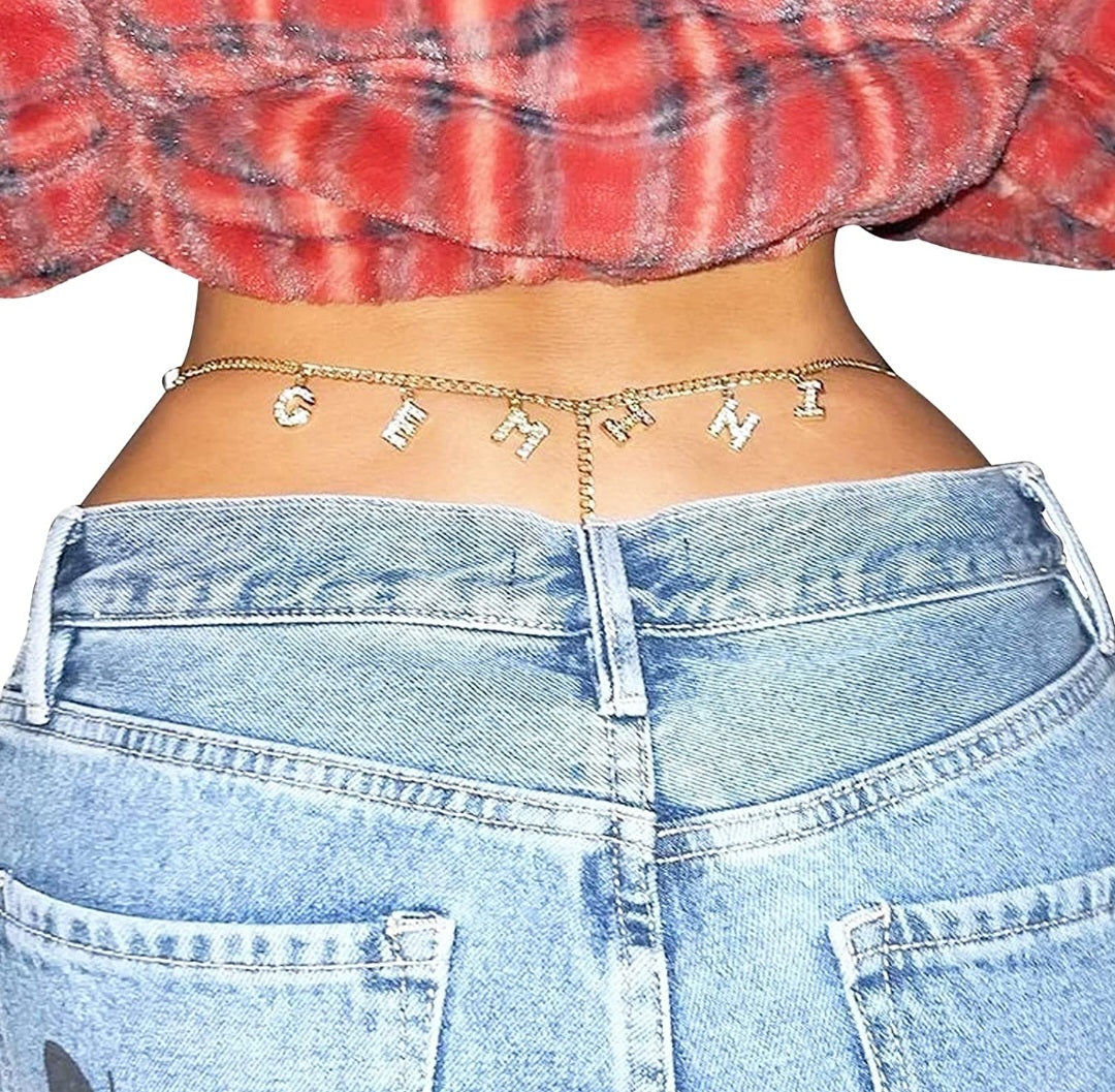 Rhinestone Waist Charm Thong Panties - Gemini