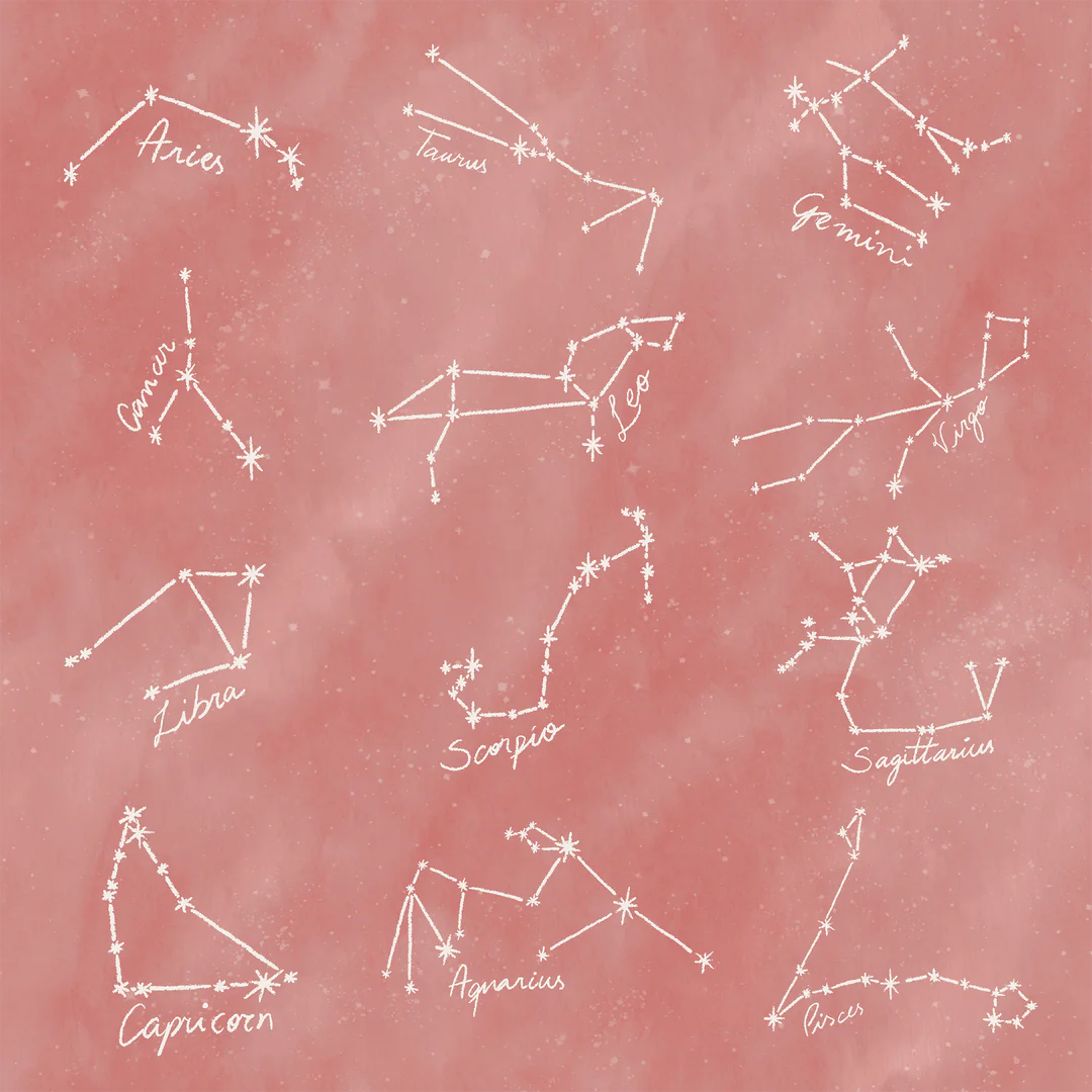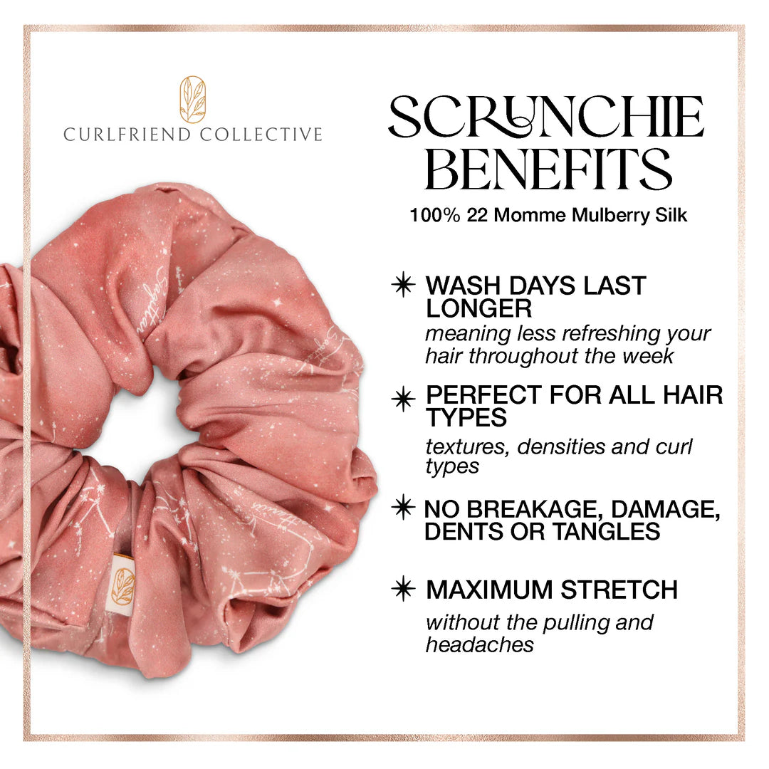 ✨ 2 Luxe, silk scrunchies in matching zodiac hand painted art