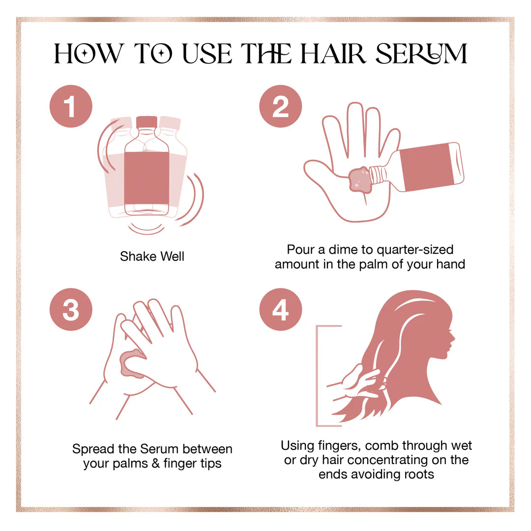 Directions: Shake well. Apply a dime sized drop to the palm of your hand and spread between your palms. Work product through slightly damp hair, avoiding the scalp and concentrating on the ends.