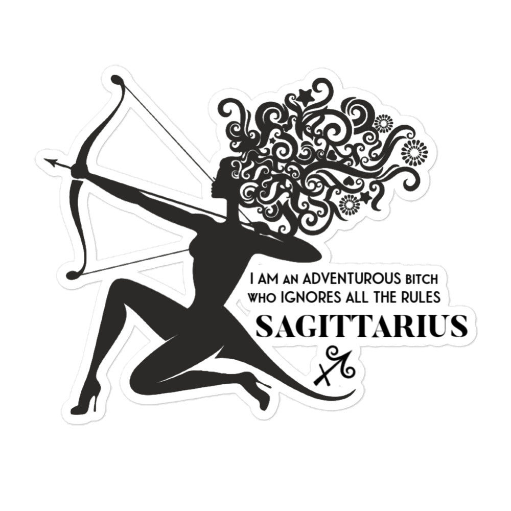 Promote your Sagittarius bad bitch adventurousness wherever you please with these stickers! Printed on durable, high opacity adhesive vinyl which makes them perfect for regular use, as well as for covering other stickers or paint.