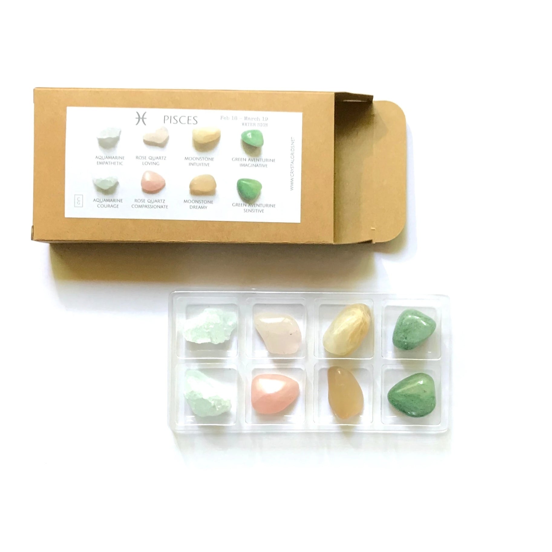 Enhance your divine Pisces essence with this beautiful 8 pack of 2 aquamarines, 2 rose quartz, 2 moonstones, & 2 green aventurines